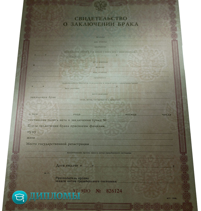 Свидетельство о браке 16000 руб. Купить